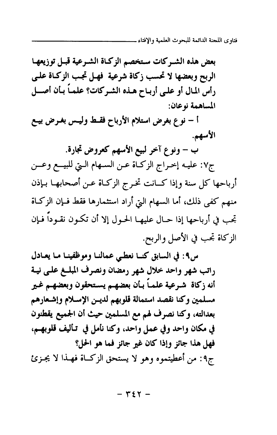 ج7: عليه إخراج الزكاة عن السهام التي للبيع وعن أرباحها كل سنة وإذا كانت تخرج الزكاة عن أصحابها بإذن منهم كفى ذلك، أما السهام التي أراد استثمارها فقط فإن الزكاة تجب في أرباحها إذا حال عليها الحول إلا أن تكون نقودا فإن الزكاة تجب في الأصل والربح.