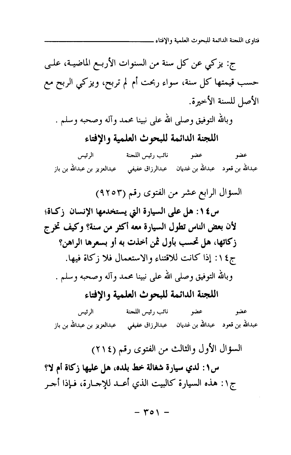 السؤال الأول والثالث من الفتوى رقم (214)