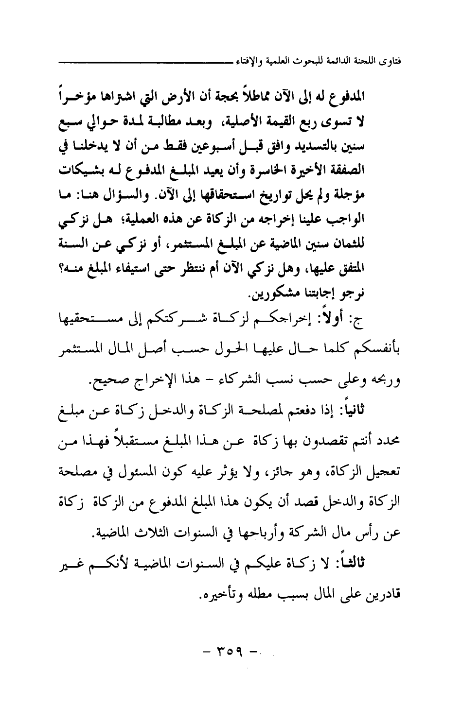 ثانيا: إذا دفعتم لمصلحة الزكاة والدخل زكاة عن مبلغ محدد أنتم تقصدون بها زكاة عن هذا المبلغ مستقبلا فهذا من تعجيل الزكاة، وهو جائز، ولا يؤثر عليه كون المسئول في مصلحة الزكاة والدخل قصد أن يكون هذا المبلغ المدفوع من الزكاة زكاة عن رأس مال الشركة وأرباحها في السنوات الثلاث الماضية.