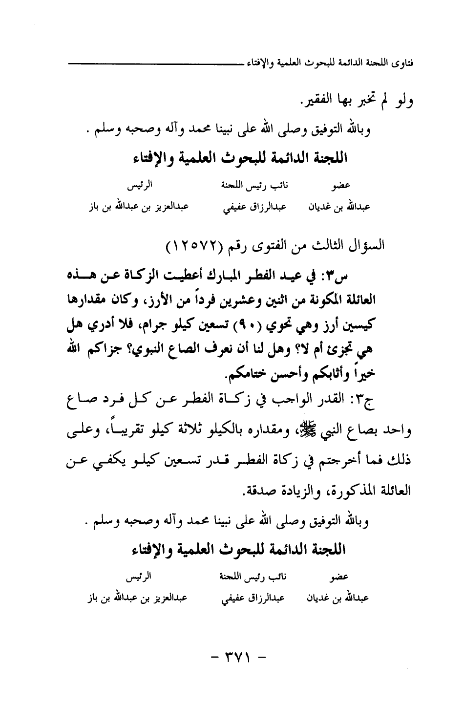 س3: في عيد الفطر المبارك أعطيت الزكاة عن هذه العائلة المكونة من اثنين وعشرين فردا من الأرز، وكان مقدارها كيسين أرز وهي تحوي (90) تسعين كيلو جرام، فلا أدري هل هي تجزئ أم لا؟ وهل لنا أن نعرف الصاع النبوي؟ جزاكم الله خيرا وأثابكم وأحسن ختامكم.