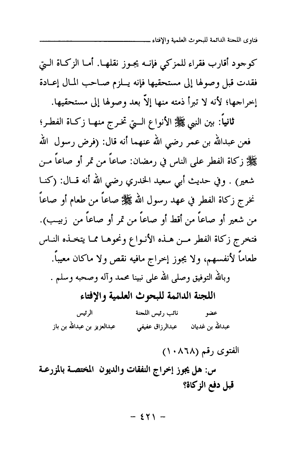 س: هل يجوز إخراج النفقات والديون المختصة بالمزرعة قبل دفع الزكاة؟