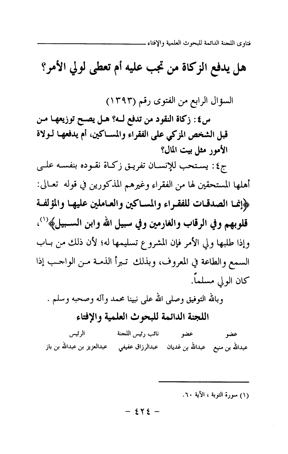 عبد الله بن منيع ... عبد الله بن غديان ... عبد الرزاق عفيفي ... عبد العزيز بن عبد الله بن باز