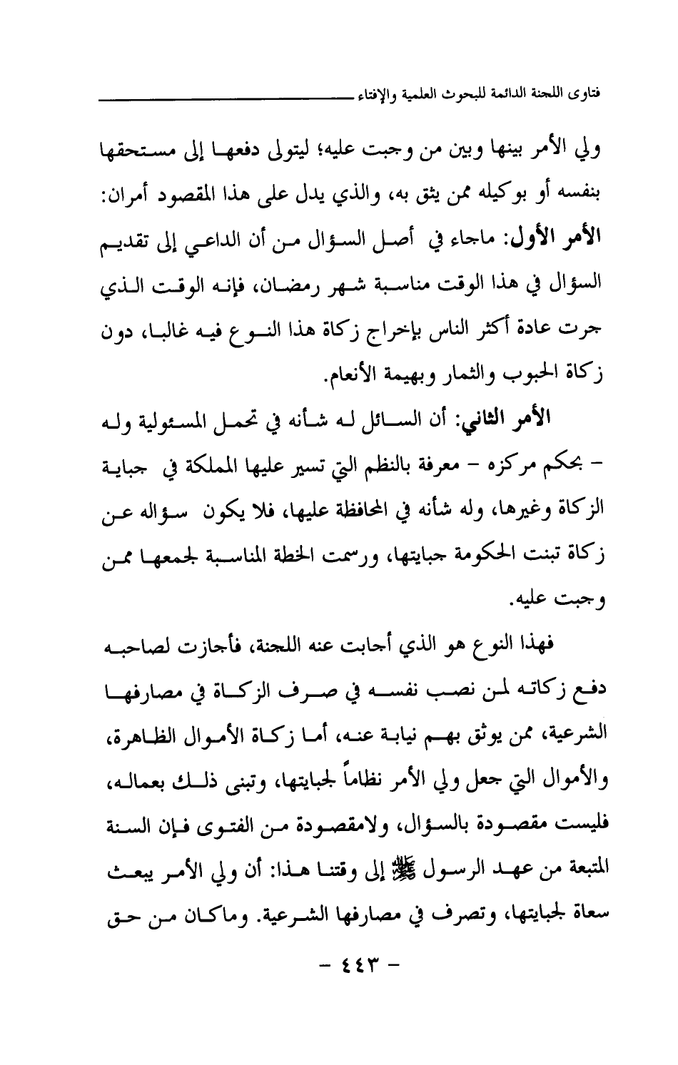 الأمر الثاني: أن السائل له شأنه في تحمل المسئولية وله - بحكم مركزه - معرفة بالنظم التي تسير عليها المملكة في جباية الزكاة وغيرها، وله شأنه في المحافظة عليها، فلا يكون سؤاله عن زكاة تبنت الحكومة جبايتها، ورسمت الخطة المناسبة لجمعها ممن وجبت عليه.