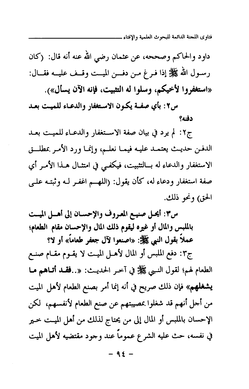س3: أيحل صنيع المعروف والإحسان إلى أهل الميت بالملبس والمال أو غيره ليقوم ذلك المال والإحسان مقام الطعام؛ عملا بقول النبي صلى الله عليه وسلم: «اصنعوا لآل جعفر طعاما (¬1) » أو لا؟