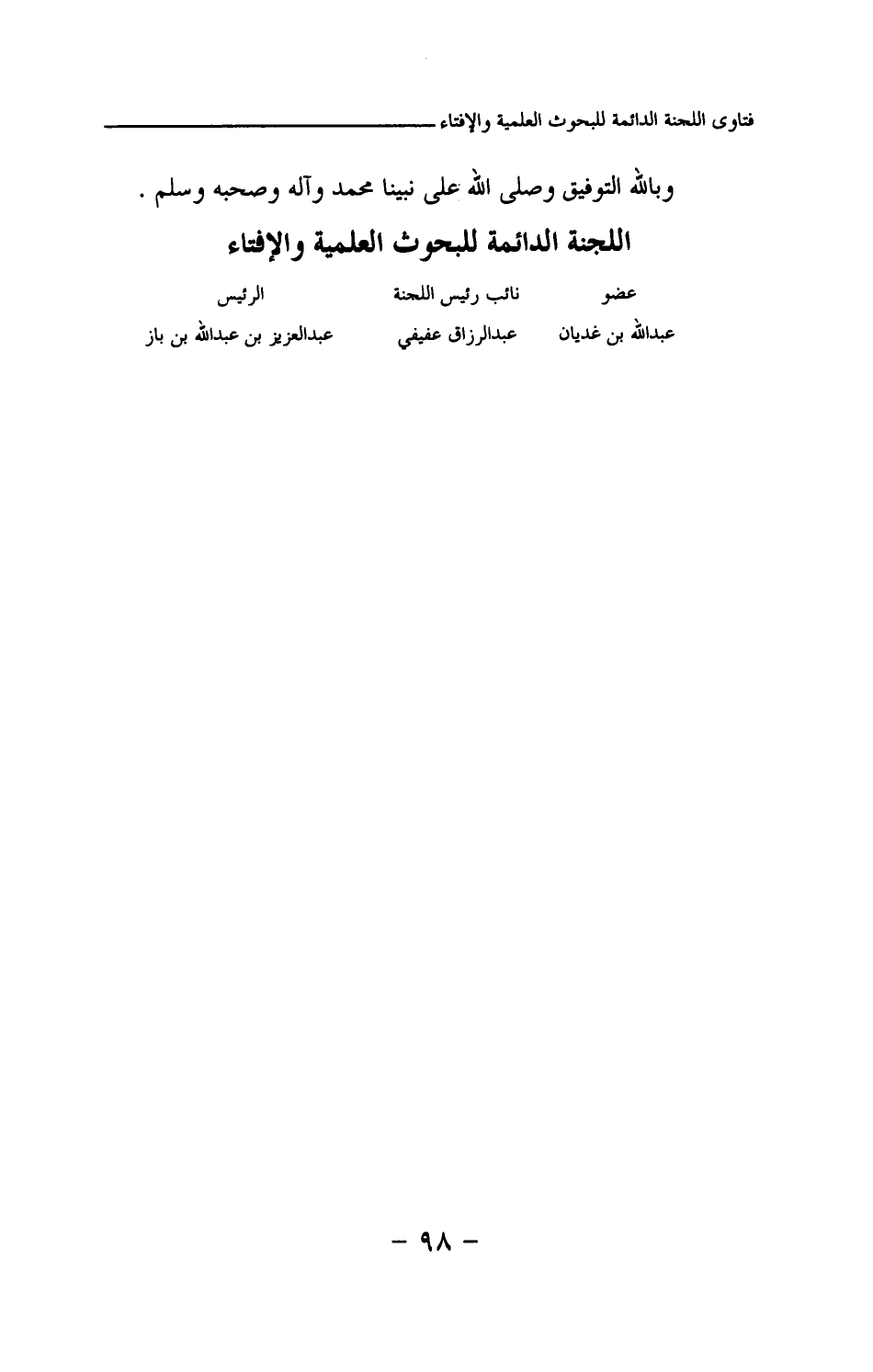 كتاب فتاوى اللجنة الدائمة - 1 (اسم الجزء: 9)