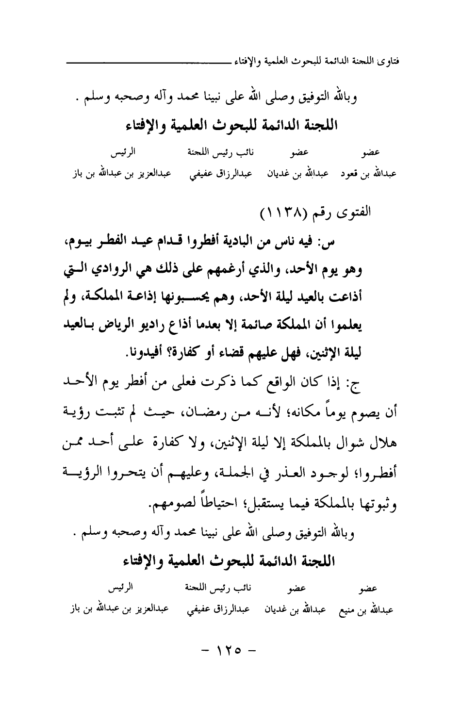 عبد الله بن منيع ... عبد الله بن غديان ... عبد الرزاق عفيفي ... عبد العزيز بن عبد الله بن باز