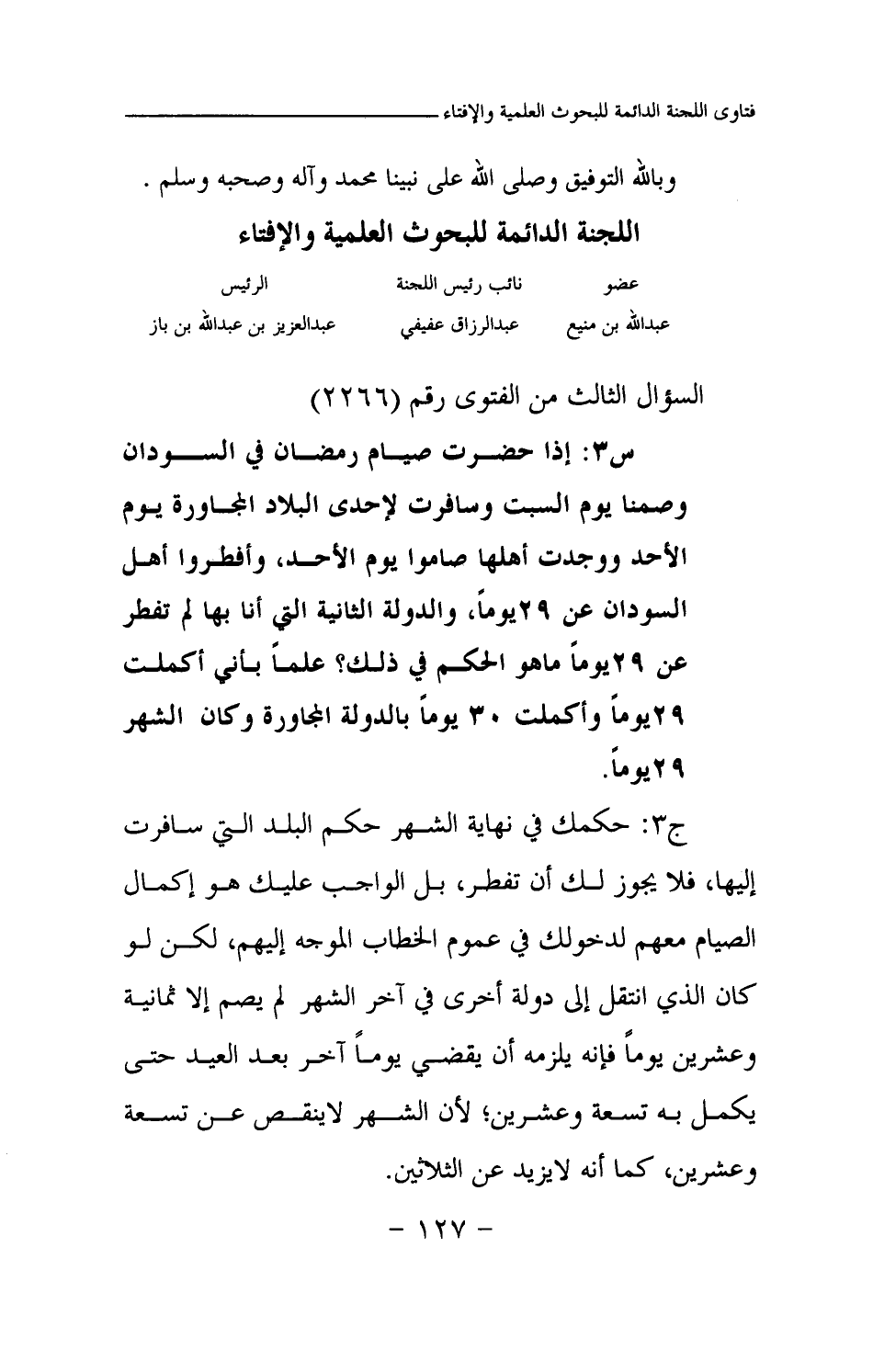 س3: إذا حضرت صيام رمضان في السودان وصمنا يوم السبت وسافرت لإحدى البلاد المجاورة يوم الأحد ووجدت أهلها صاموا يوم الأحد، وأفطروا أهل السودان عن 29 يوما، والدولة الثانية التي أنا بها لم تفطر عن 29 يوما ما هو الحكم في ذلك؟ علما بأني أكملت 29 يوما وأكملت 30 يوما بالدولة المجاورة وكان الشهر 29 يوما.