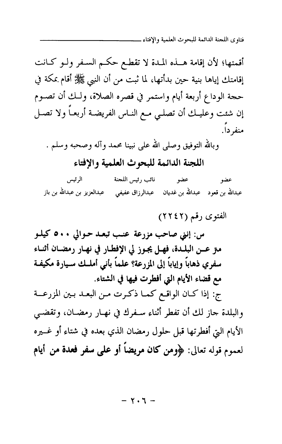 ج: إذا كان الواقع كما ذكرت من البعد بين المزرعة والبلدة جاز لك أن تفطر أثناء سفرك في نهار رمضان، وتقضي الأيام التي أفطرتها قبل حلول رمضان الذي بعده في شتاء أو غيره لعموم قوله تعالى: {وَمَنْ كَانَ مَرِيضًا أَوْ عَلَى سَفَرٍ فَعِدَّةٌ مِنْ أَيَّامٍ أُخَرَ يُرِيدُ اللَّهُ بِكُمُ الْيُسْرَ وَلَا يُرِيدُ بِكُمُ الْعُسْرَ} (¬1)