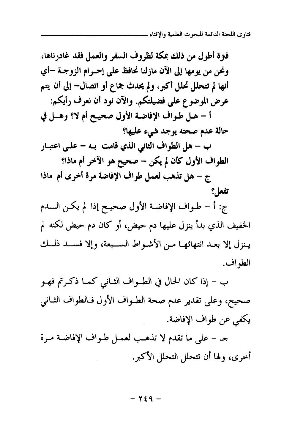 جـ- على ما تقدم لا تذهب لعمل طواف الإفاضة مرة أخرى، ولها أن تتحلل التحلل الأكبر.