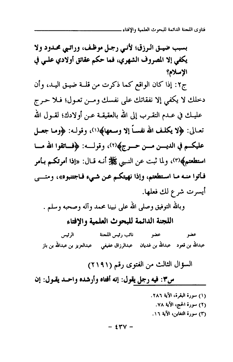 السؤال الثالث من الفتوى رقم (2191)