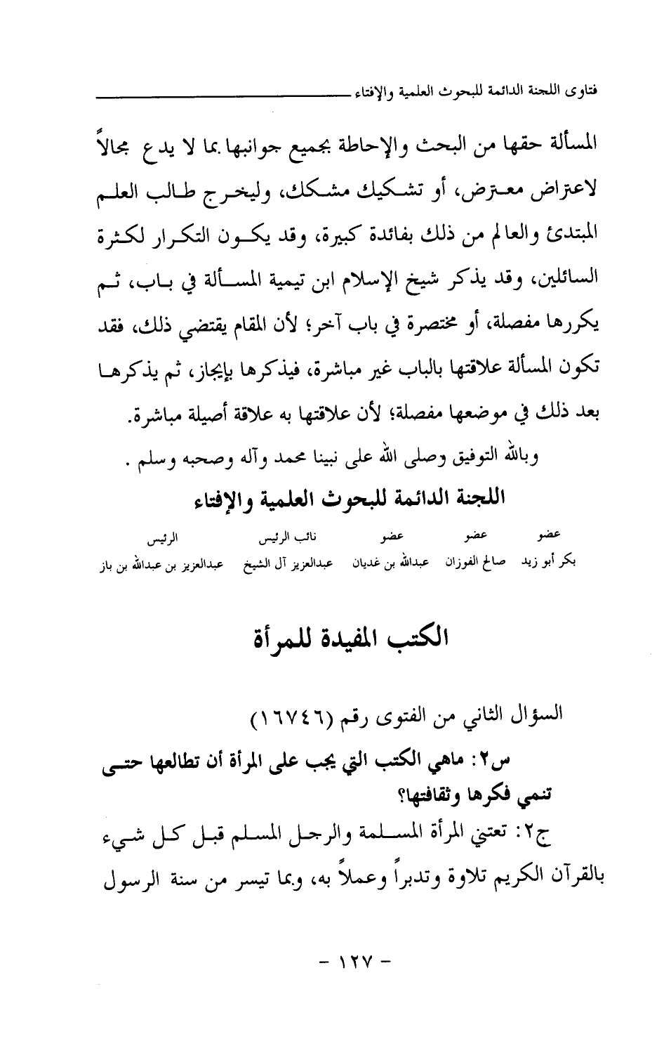 س2: ما هي الكتب التي يجب على المرأة أن تطالعها حتى تنمي فكرها وثقافتها؟
