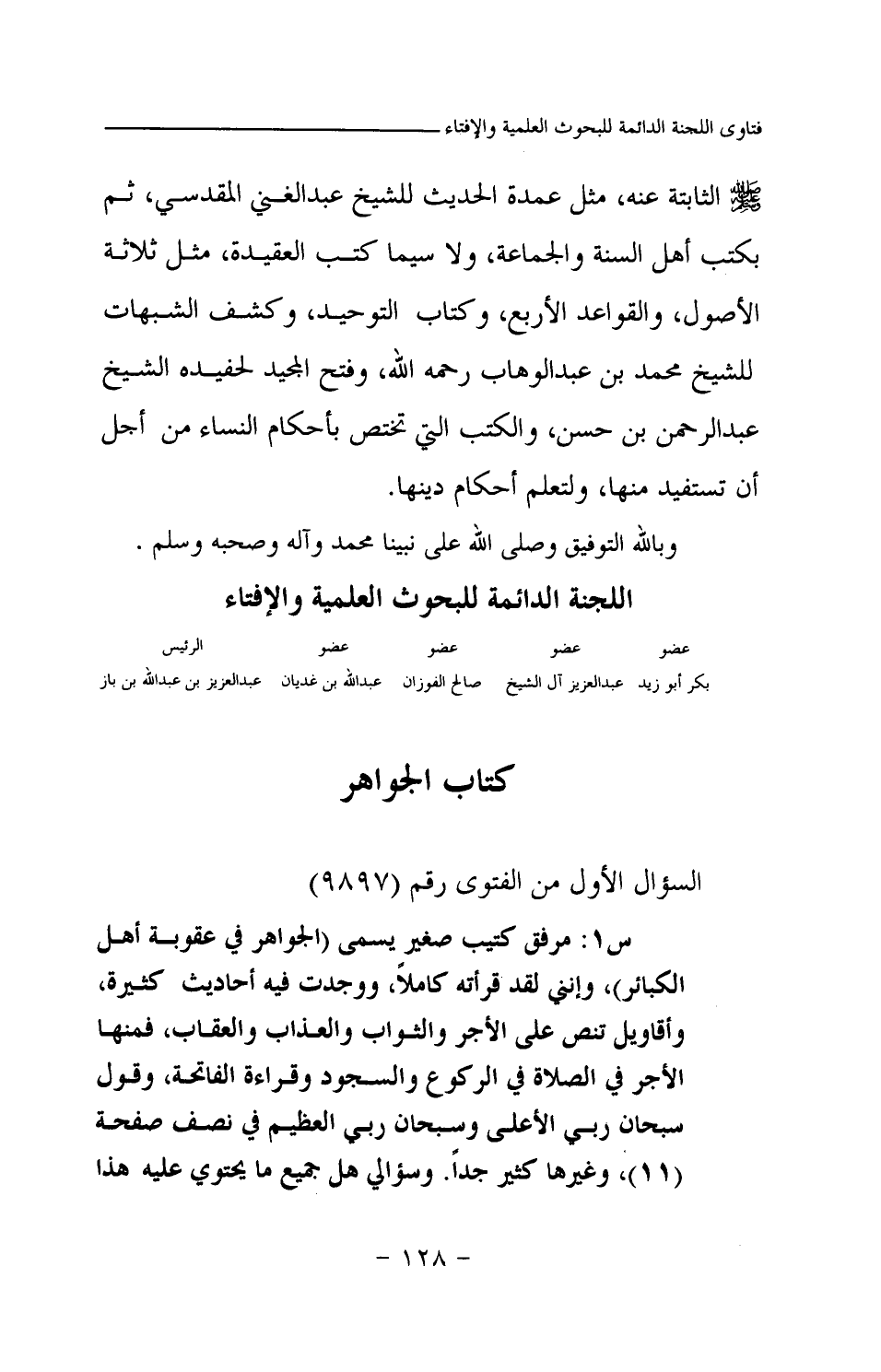 بكر أبو زيد ... عبد العزيز آل الشيخ ... صالح الفوزان ... عبد الله بن غديان ... عبد العزيز بن عبد الله بن باز