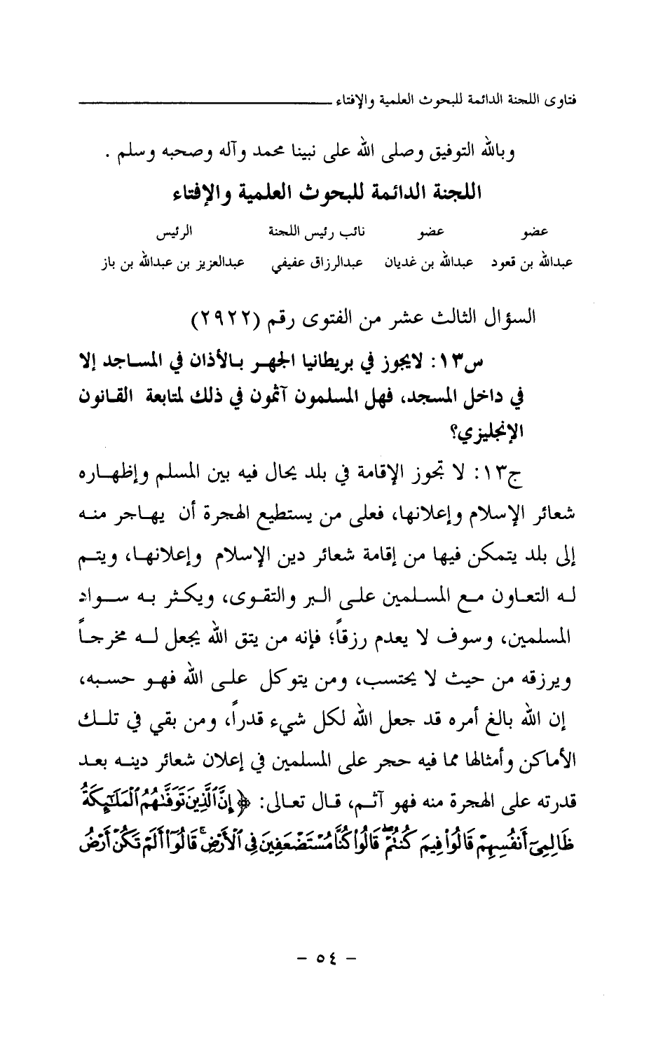 السؤال الثالث عشر من الفتوى رقم (2922)