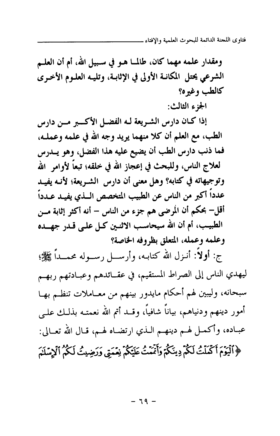ومقدار علمه مهما كان، طالما هو في سبيل الله، أم أن العلم الشرعي يحتل المكانة الأولى في الإثابة، وتليه العلوم الأخرى كالطب وغيره؟