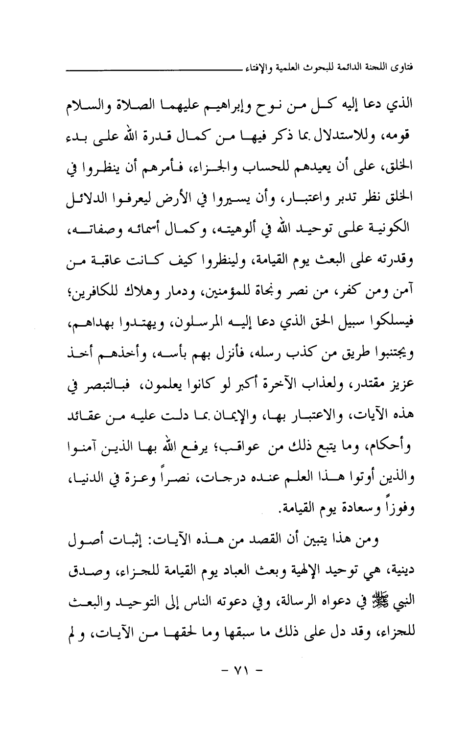 الذي دعا إليه كل من نوح وإبراهيم عليهما الصلاة والسلام قومه، وللاستدلال بما ذكر فيها من كمال قدرة الله على بدء الخلق، على أن يعيدهم للحساب والجزاء، فأمرهم أن ينظروا في الخلق نظر تدبر واعتبار، وأن يسيروا في الأرض ليعرفوا الدلائل الكونية على توحيد الله في ألوهيته، وكمال أسمائه وصفاته، وقدرته على البعث يوم القيامة، ولينظروا كيف كانت عاقبة من آمن ومن كفر، من نصر ونجاة للمؤمنين، ودمار وهلاك للكافرين؛ فيسلكوا سبيل الحق الذي دعا إليه المرسلون، ويهتدوا بهداهم، ويجتنبوا طريق من كذب رسله، فأنزل بهم بأسه، وأخذهم أخذ عزيز مقتدر، ولعذاب الآخرة أكبر لو كانوا يعلمون، فبالتبصر في هذه الآيات، والاعتبار بها، والإيمان بما دلت عليه من عقائد وأحكام، وما يتبع ذلك من عواقب؛ يرفع الله بها الذين آمنوا والذين أوتوا هذا العلم عنده درجات، نصرا وعزة في الدنيا، وفوزا وسعادة يوم القيامة.
