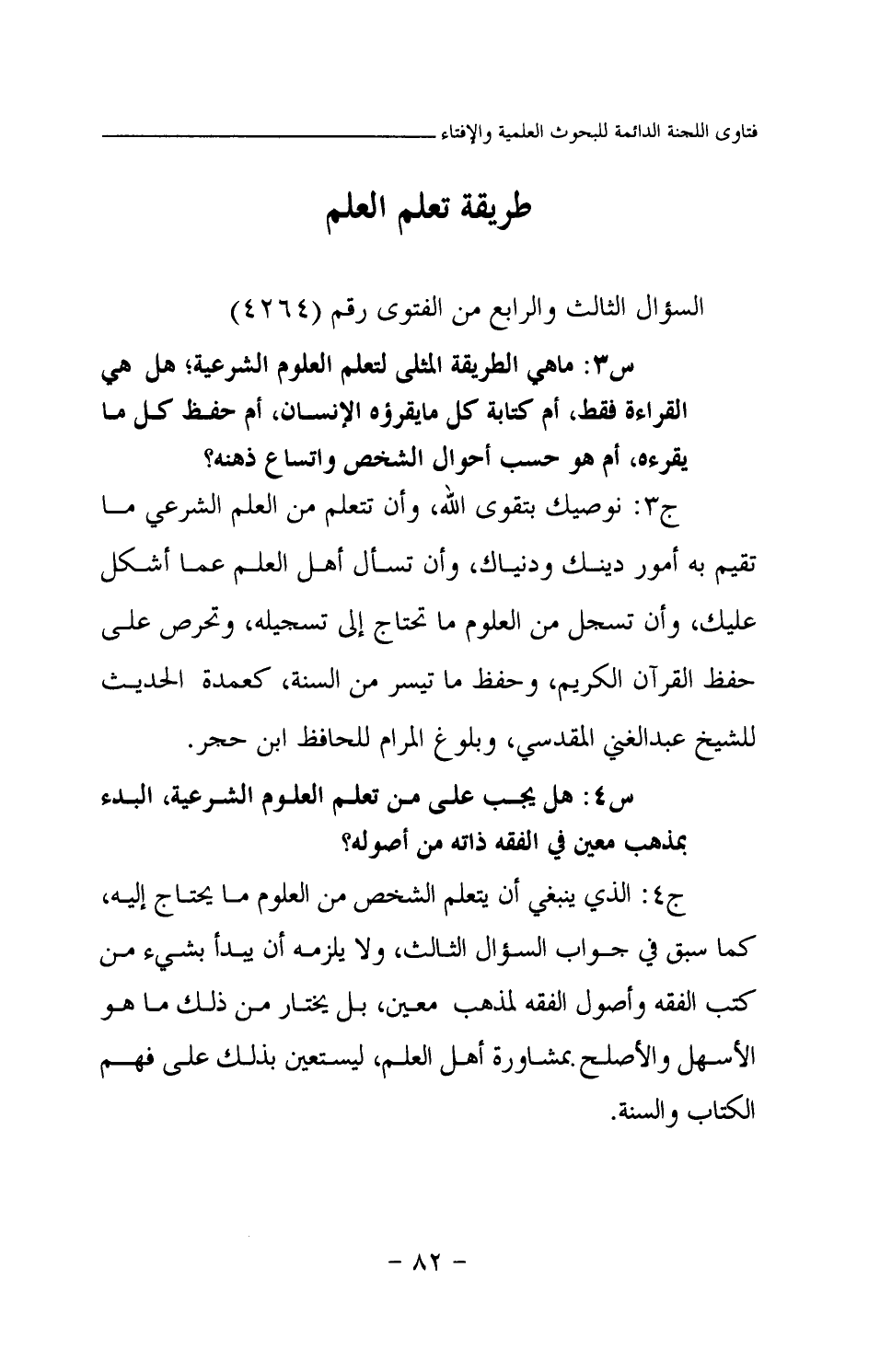 س3: ما هي الطريقة المثلى لتعلم العلوم الشرعية؟ هل هي القراءة فقط، أم كتابة كل ما يقرؤه الإنسان، أم حفظ كل ما يقرءه، أم هو حسب أحوال الشخص واتساع ذهنه؟