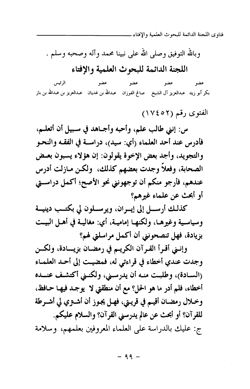 بكر أبو زيد ... عبد العزيز آل الشيخ ... صالح الفوزان ... عبد الله بن غديان ... عبد العزيز بن عبد الله بن باز