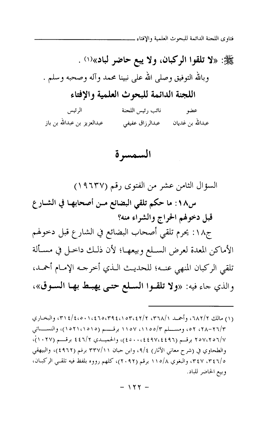 س18: ما حكم تلقي البضائع من أصحابها في الشارع قبل دخولهم الحراج والشراء منه؟