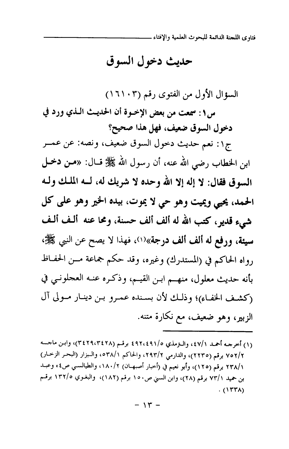 س1: سمعت من بعض الإخوة أن الحديث الذي ورد في دخول السوق ضعيف، فهل هذا صحيح؟