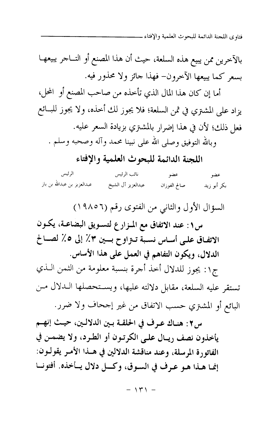 س1: عند الاتفاق مع المزارع لتسويق البضاعة، يكون الاتفاق على أساس نسبة تتراوح بين 3% إلى 5% لصالح الدلال، ويكون التفاهم في العمل على هذا الأساس.