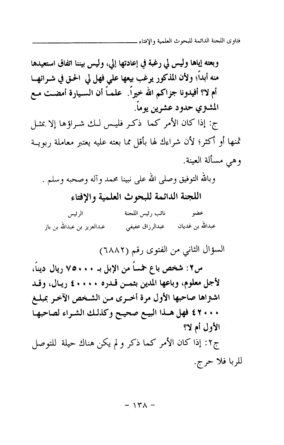 س2: شخص باع خمسا من الإبل بـ 75000 ريال دينا، لأجل معلوم، وباعها المدين بثمن قدره 40000 ريال، وقد اشتراها صاحبها الأول مرة أخرى من الشخص الآخر بمبلغ 42000 فهل هذا البيع صحيح وكذلك الشراء لصاحبها الأول أم لا؟