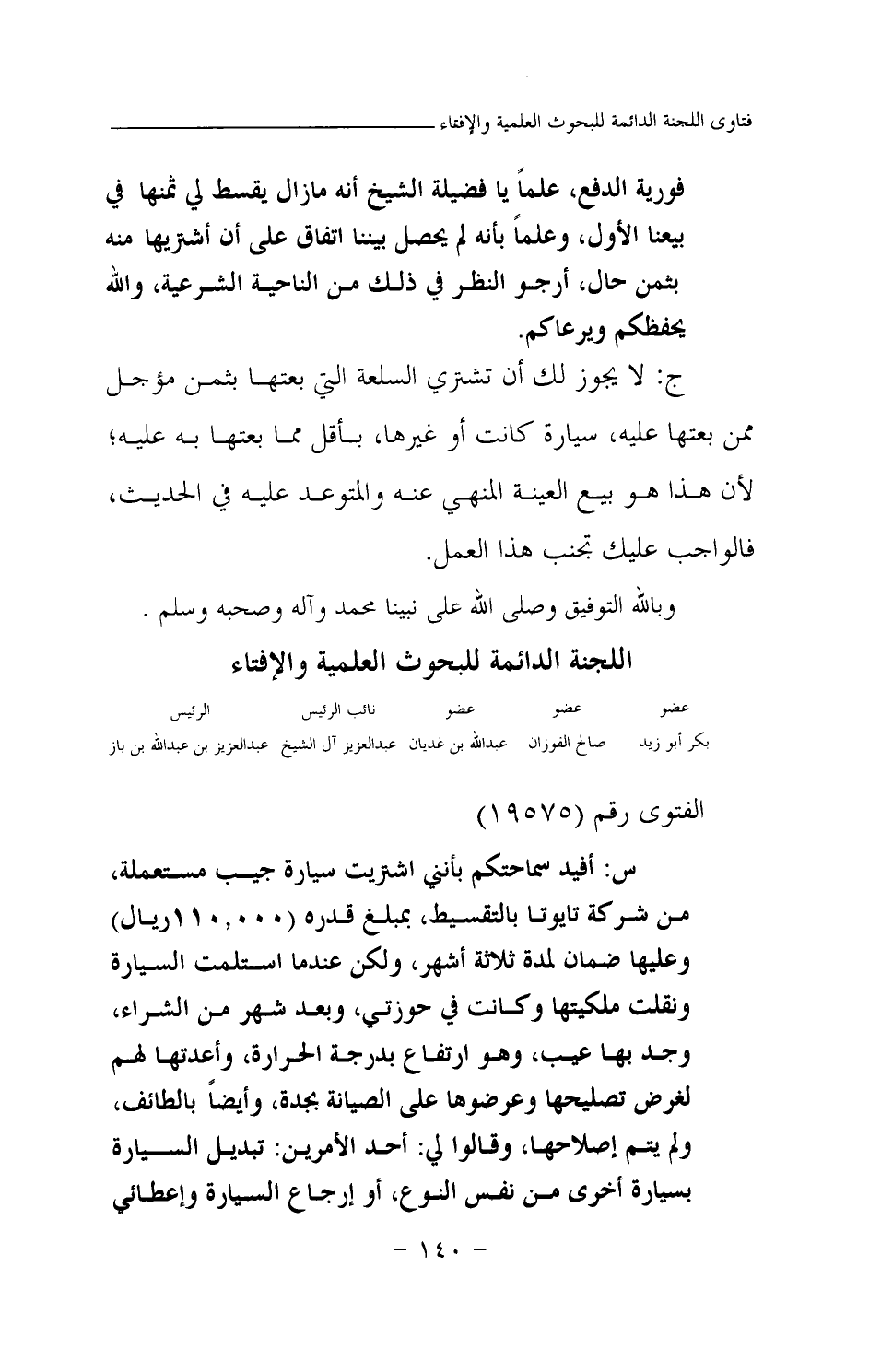س: أفيد سماحتكم بأنني اشتريت سيارة جيب مستعملة، من شركة تايوتا بالتقسيط، بمبلغ قدره (110000 ريال) وعليها ضمان لمدة ثلاثة أشهر، ولكن عندما استلمت السيارة ونقلت ملكيتها وكانت في حوزتي، وبعد شهر من الشراء، وجد بها عيب، وهو ارتفاع بدرجة الحرارة، وأعدتها لهم لغرض تصليحها وعرضوها على الصيانة بجدة، وأيضا بالطائف، ولم يتم إصلاحها، وقالوا لي: أحد الأمرين: تبديل السيارة بسيارة أخرى من نفس النوع، أو إرجاع السيارة وإعطائي
