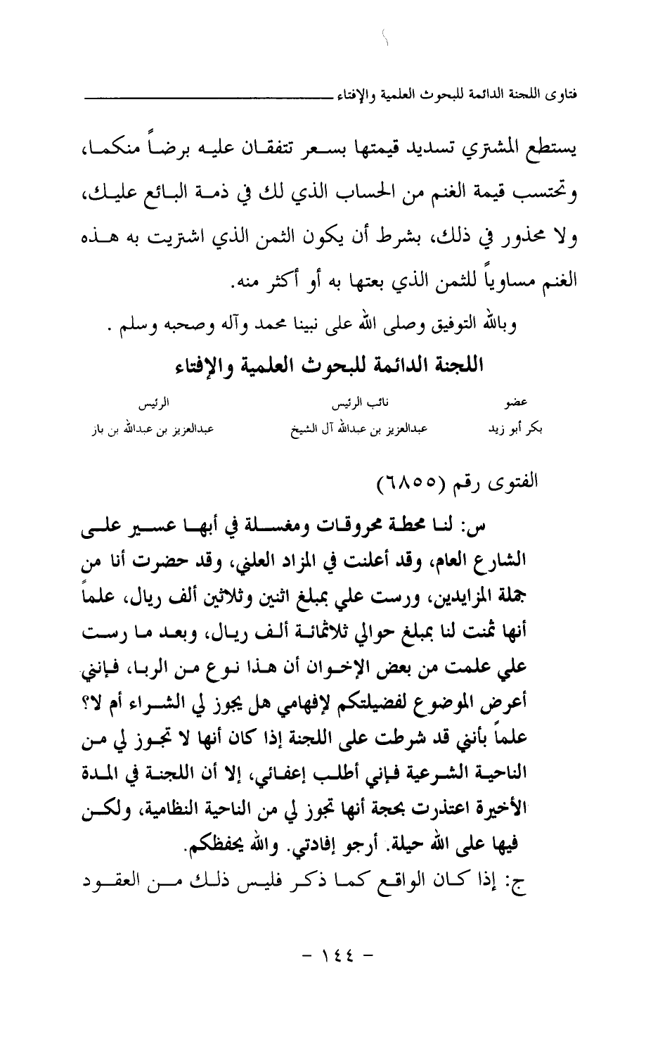 س: لنا محطة محروقات ومغسلة في أبها عسير على الشارع العام، وقد أعلنت في المزاد العلني، وقد حضرت أنا من جملة المزايدين، ورست علي بمبلغ اثنين وثلاثين ألف ريال، علما أنها ثمنت لنا بمبلغ حوالي ثلاثمائة ألف ريال، وبعد ما رست علي علمت من بعض الإخوان أن هذا نوع من الربا، فإنني أعرض الموضوع لفضيلتكم لإفهامي هل يجوز لي الشراء أم لا؟ علما بأنني قد شرطت على اللجنة إذا كان أنها لا تجوز لي من الناحية الشرعية فإني أطلب إعفائي، إلا أن اللجنة في المدة الأخيرة اعتذرت بحجة أنها تجوز لي من الناحية النظامية، ولكن فيها على الله حيلة. أرجو إفادتي. والله يحفظكم.