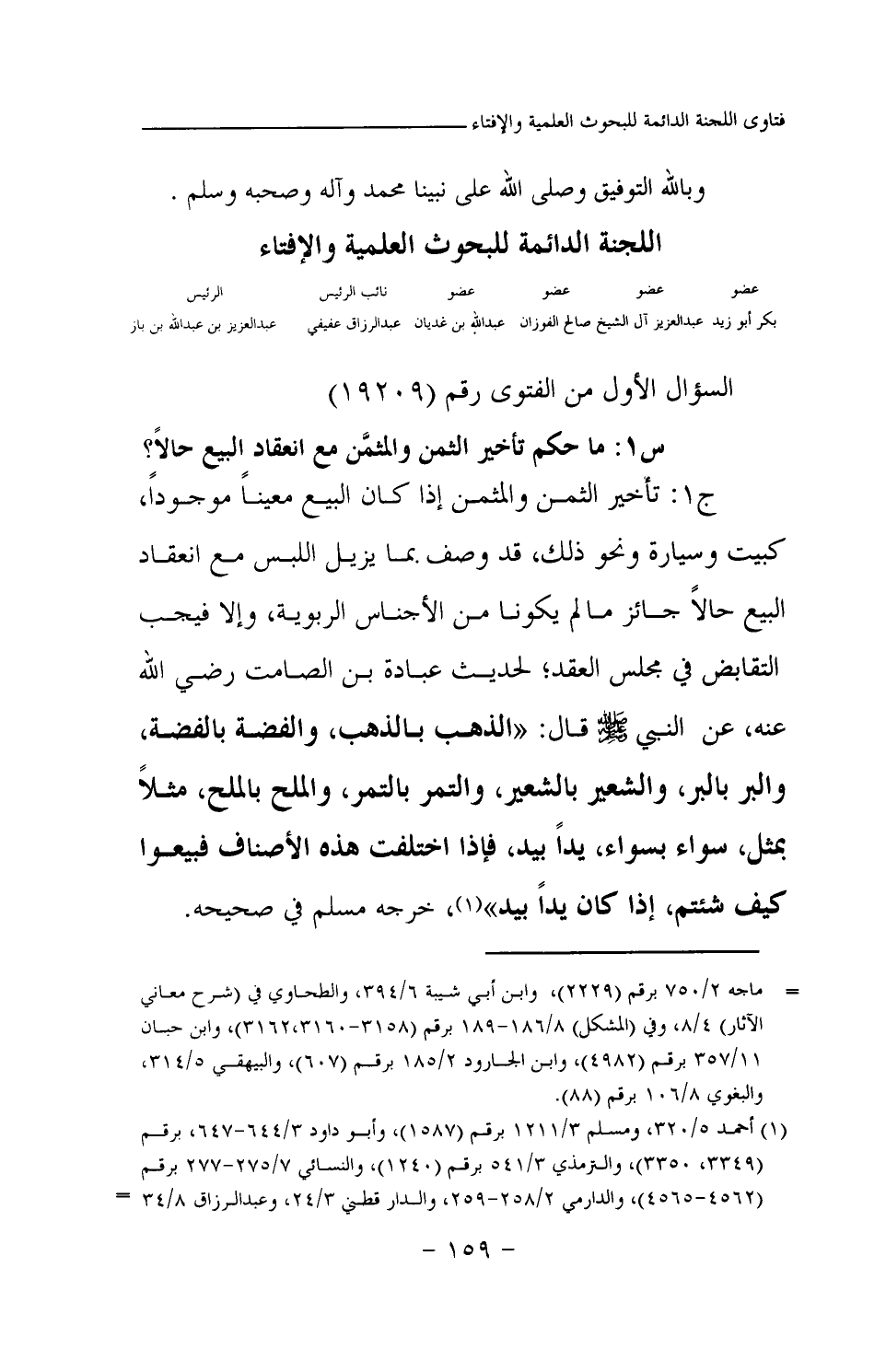 بكر أبو زيد ... عبد العزيز آل الشيخ ... صالح الفوزان ... عبد الله بن غديان ... عبد الرزاق عفيفي ... عبد العزيز بن عبد الله بن باز