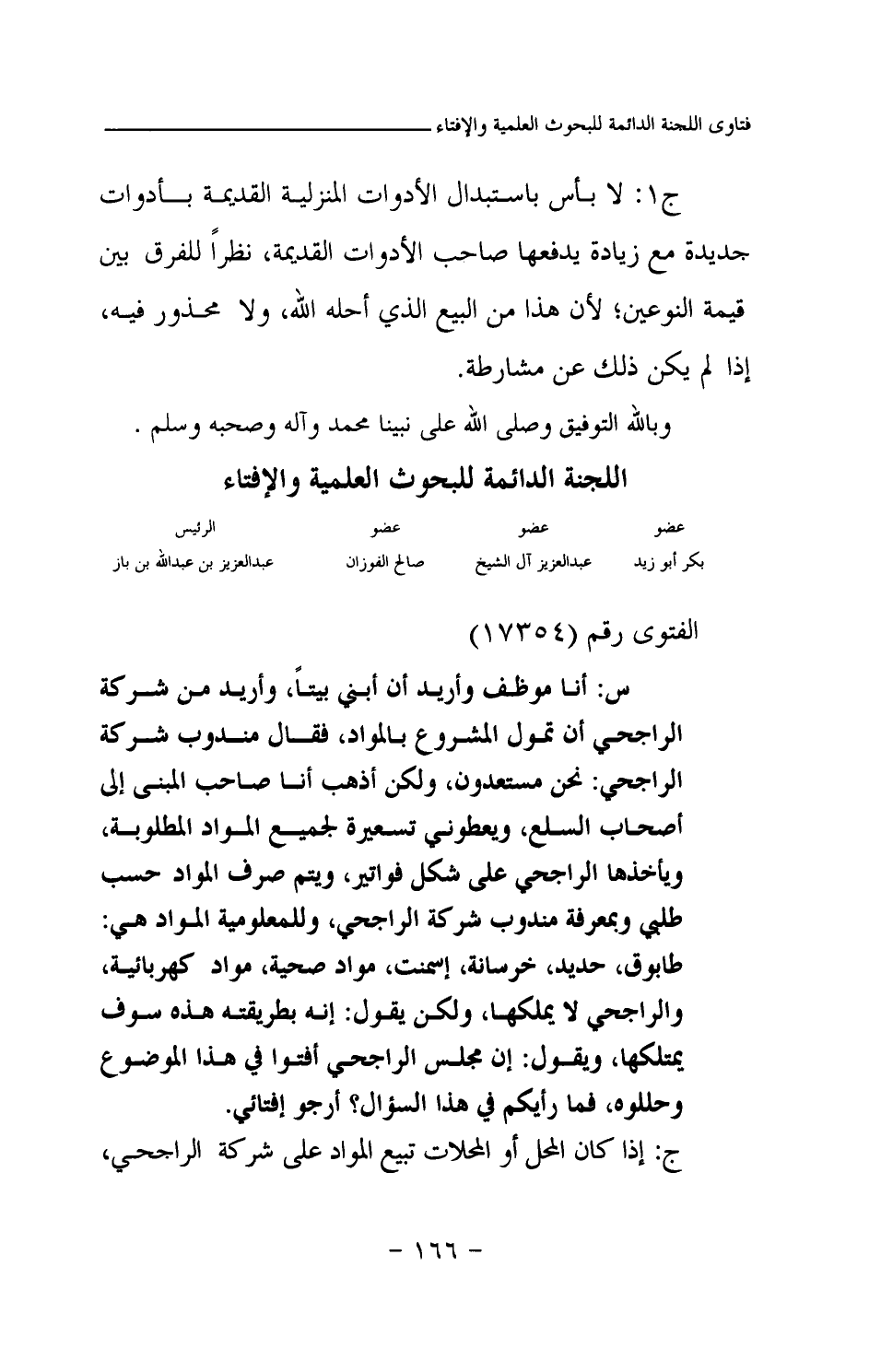 ج1: لا بأس باستبدال الأدوات المنزلية القديمة بأدوات جديدة مع زيادة يدفعها صاحب الأدوات القديمة، نظرا للفرق بين قيمة النوعين؛ لأن هذا من البيع الذي أحله الله، ولا محذور فيه، إذا لم يكن ذلك عن مشارطة.