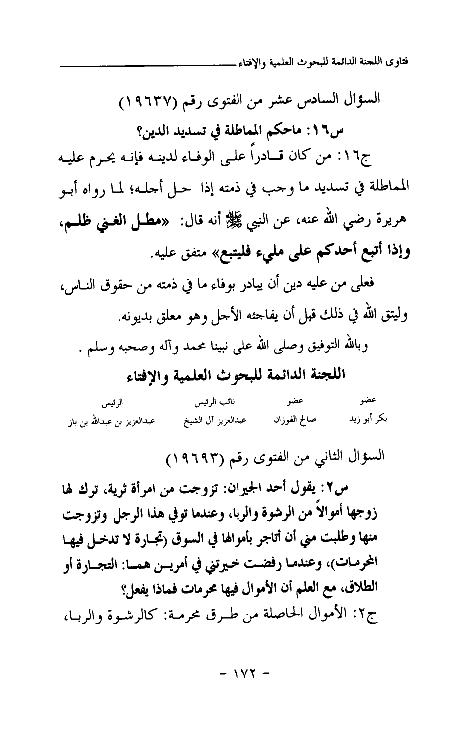 السؤال السادس عشر من الفتوى رقم (19637) :