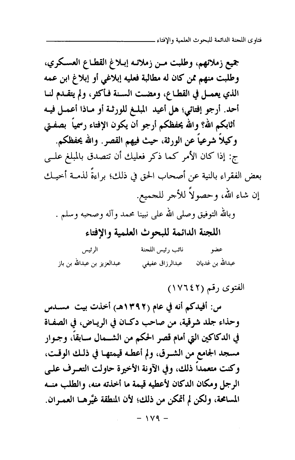 س: أفيدكم أنه في عام (1392هـ) أخذت بيت مسدس وحذاء جلد شرقية، من صاحب دكان في الرياض، في الصفاة في الدكاكين التي أمام قصر الحكم من الشمال سابقا، وجوار مسجد الجامع من الشرق، ولم أعطه قيمتها في ذلك الوقت، وكنت متعمدا ذلك، وفي الآونة الأخيرة حاولت التعرف على الرجل ومكان الدكان لأعطيه قيمة ما أخذته منه، والطلب منه المسامحة، ولكن لم أتمكن من ذلك؛ لأن المنطقة غيرها العمران.