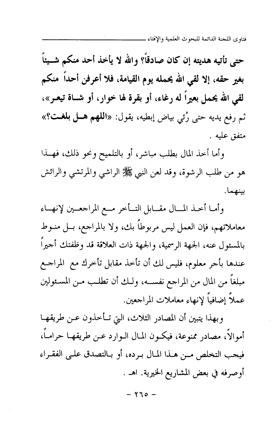 وأما أخذ المال مقابل التأخر مع المراجعين لإنهاء معاملاتهم، فإن العمل ليس مربوطا بك، ولا بالمراجع، بل منوط بالمسئول عنه، الجهة الرسمية، والجهة ذات العلاقة قد وظفتك أجيرا عندها بأجر معلوم، فليس لك أن تأخذ مقابل تأخرك مع المراجع مبلغا من المال من المراجع نفسه، ولك أن تطلب من المسئولين عملا إضافيا لإنهاء معاملات المراجعين.