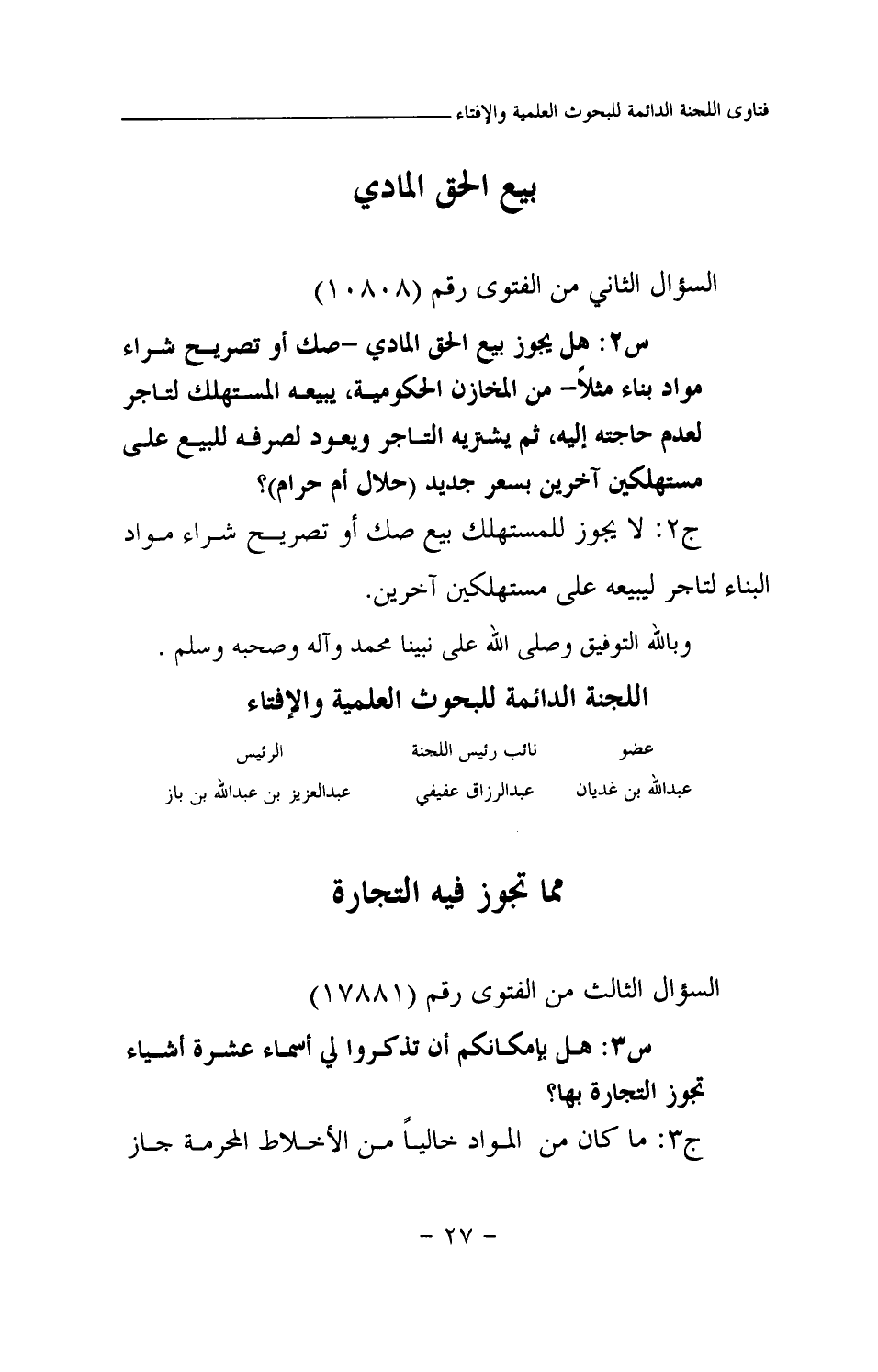 س2: هل يجوز بيع الحق المادي -صك أو تصريح شراء مواد بناء مثلا- من المخازن الحكومية، يبيعه المستهلك لتاجر لعدم حاجته إليه، ثم يشتريه التاجر ويعود لصرفه للبيع على مستهلكين آخرين بسعر جديد (حلال أم حرام) ؟