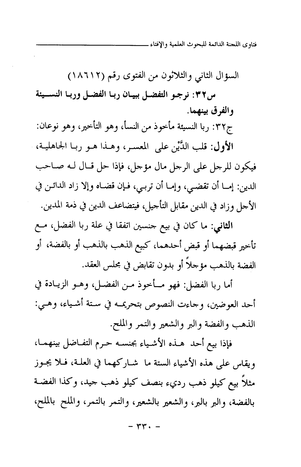 س32: نرجو التفضل ببيان ربا الفضل وربا النسيئة والفرق بينهما.
