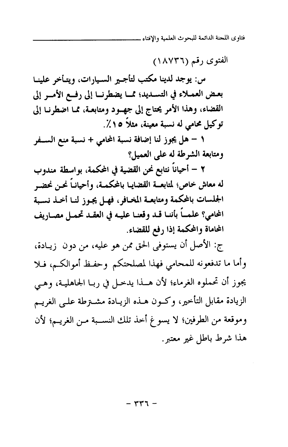 ج: الأصل أن يستوفى الحق ممن هو عليه، من دون زيادة، وأما ما تدفعونه للمحامي فهذا لمصلحتكم وحفظ أموالكم، فلا يجوز أن تحملوه الغرماء؛ لأن هذا يدخل في ربا الجاهلية، وهي الزيادة مقابل التأخير، وكون هذه الزيادة مشترطة على الغريم وموقعة من الطرفين؛ لا يسوغ أخذ تلك النسبة من الغريم؛ لأن هذا شرط باطل غير معتبر.
