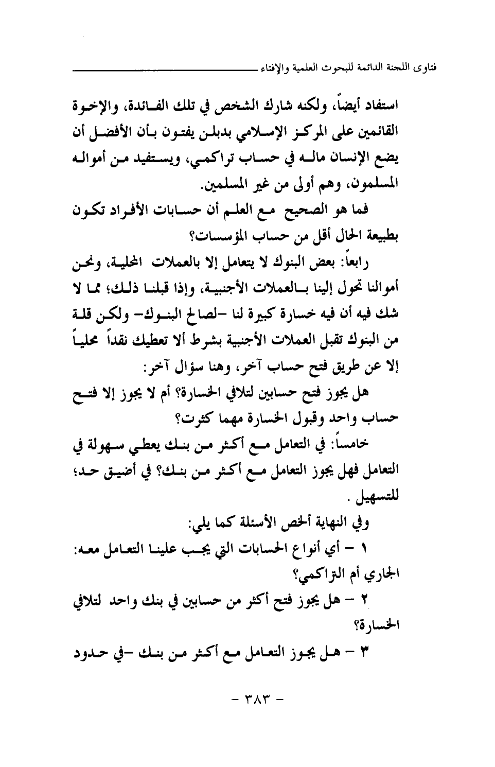 وفي النهاية ألخص الأسئلة كما يلي: 1- أي أنواع الحسابات التي يجب علينا التعامل معه: الجاري أم التراكمي؟ 2- هل يجوز فتح أكثر من حسابين في بنك واحد لتلافي الخسارة؟ 3- هل يجوز التعامل مع أكثر من بنك - في حدود