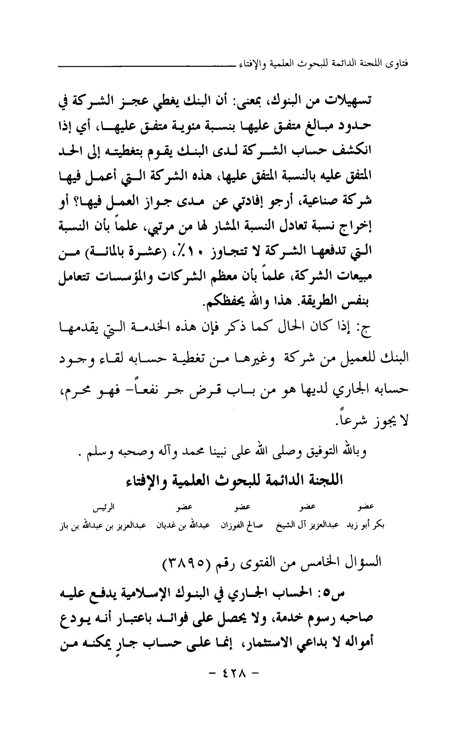 س5: الحساب الجاري في البنوك الإسلامية يدفع عليه صاحبه رسوم خدمة،