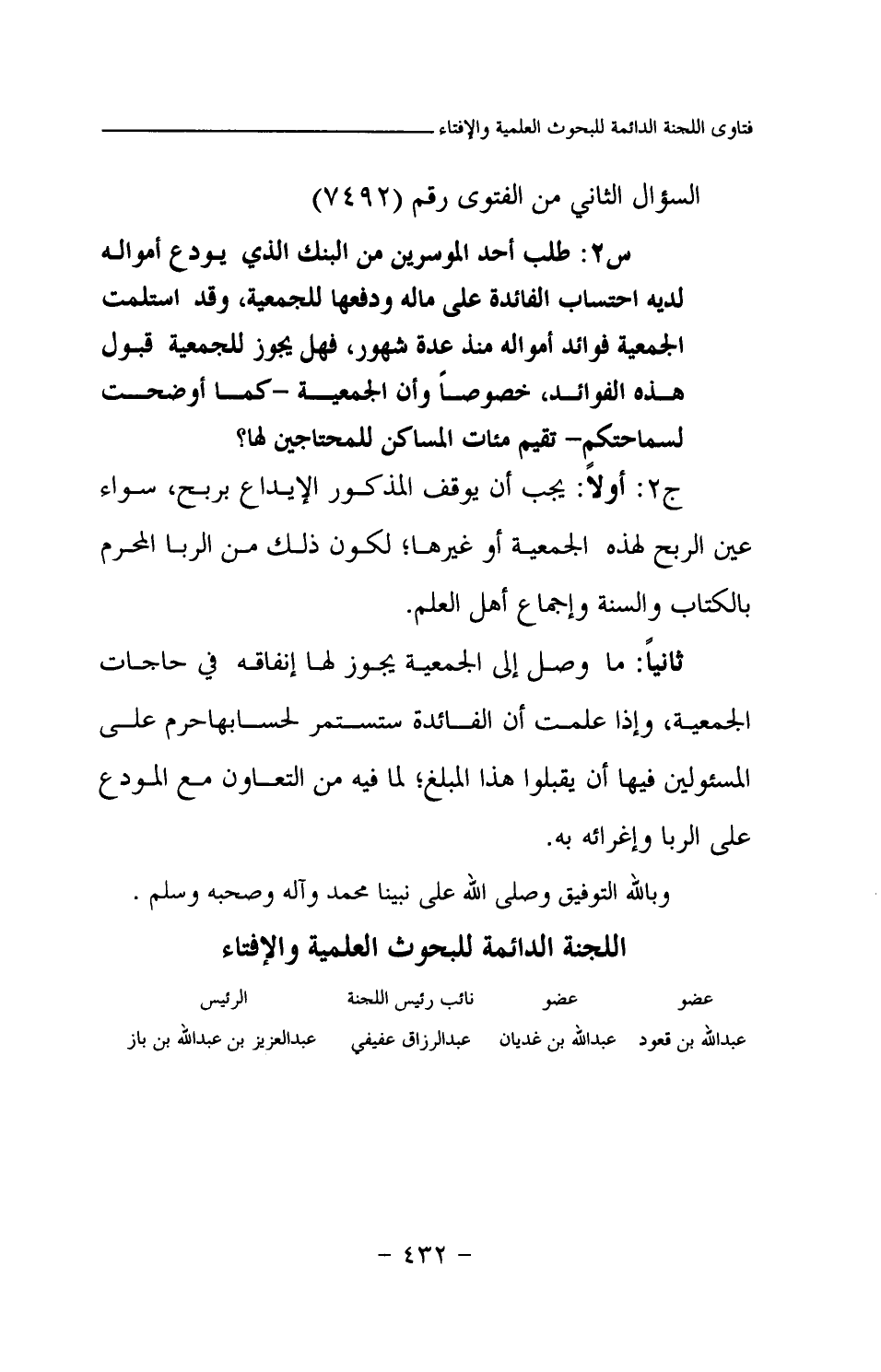 س2: طلب أحد الموسرين من البنك الذي يودع أمواله لدية احتساب الفائدة على ماله ودفعها للجمعية،