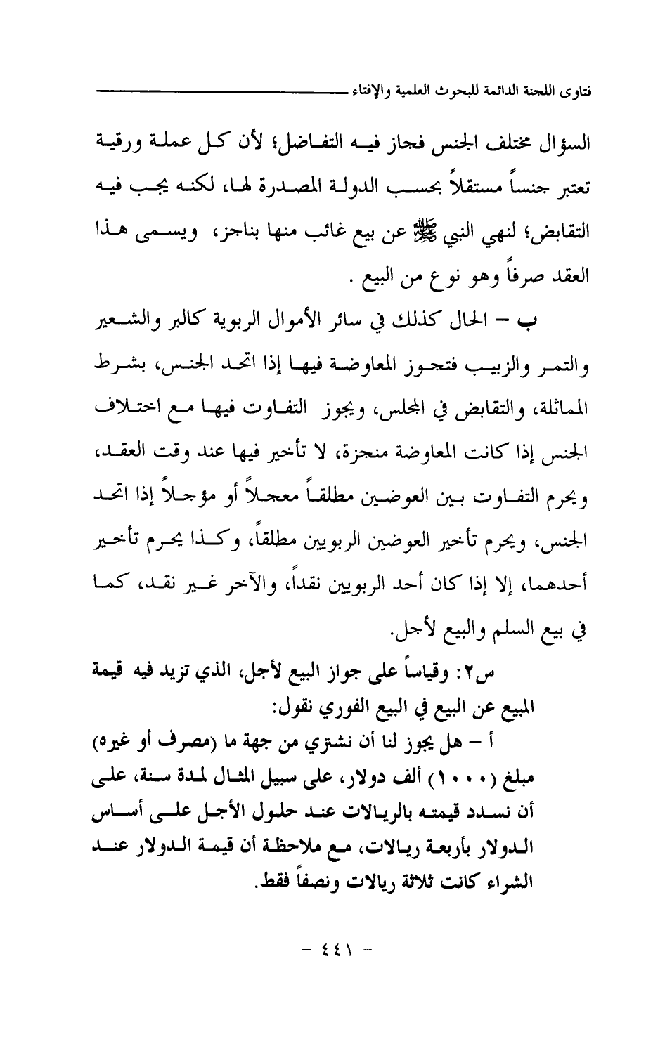 س2: وقياسا على جواز البيع لأجل، الذي تزيد فيه قيمة المبيع عن البيع في البيع الفوري نقول: أ- هل يجوز لنا أن نشتري من جهة ما (مصرف أو غيره) مبلغ (1000) ألف دولار، على سبيل المثال لمدة سنة، على أن نسدد قيمته بالريالات عند حلول الأجل على أساس الدولار بأربعة ريالات، مع ملاحظة أن قيمة الدولار عند الشراء كانت ثلاثة ريالات ونصفا فقط.
