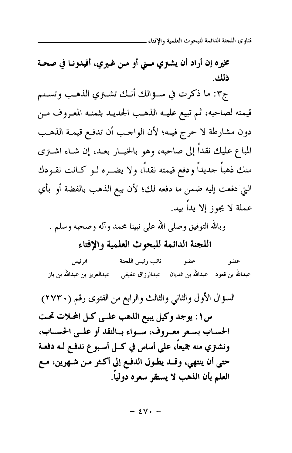 س1: يوجد وكيل يبيع الذهب على كل المحلات تحت الحساب بسعر معروف، سواء بالنقد أو على الحساب، ونشتري منه جميعا، على أساس في كل أسبوع ندفع له دفعة حتى أن ينتهي، وقد يطول الدفع إلى أكثر من شهرين، مع العلم بأن الذهب لا يستقر سعره دوليا.