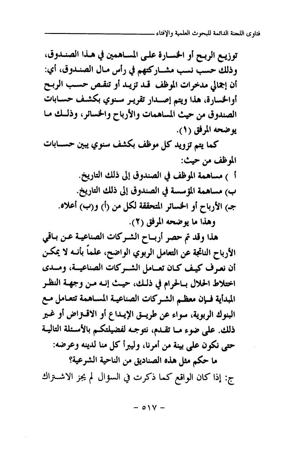 هذا وقد تم حصر أرباح الشركات الصناعية عن باقي الأرباح الناتجة عن التعامل الربوي الواضح، علما بأنه لا يمكن أن نعرف كيف كان تعامل الشركات الصناعية، ومدى اختلاط الحلال بالحرام في ذلك، حيث إنه من وجهة النظر المبدأية فإن معظم الشركات الصناعية المساهمة تتعامل مع البنوك الربوية، سواء عن طريق الإيداع أو الاقتراض أو غير ذلك. على ضوء ما تقدم، نتوجه لفضيلتكم بالأسئلة التالية حتى نكون على بينة من أمرنا، وليبرأ كل منا لدينه وعرضه: ما حكم مثل هذه الصناديق من الناحية الشرعية؟