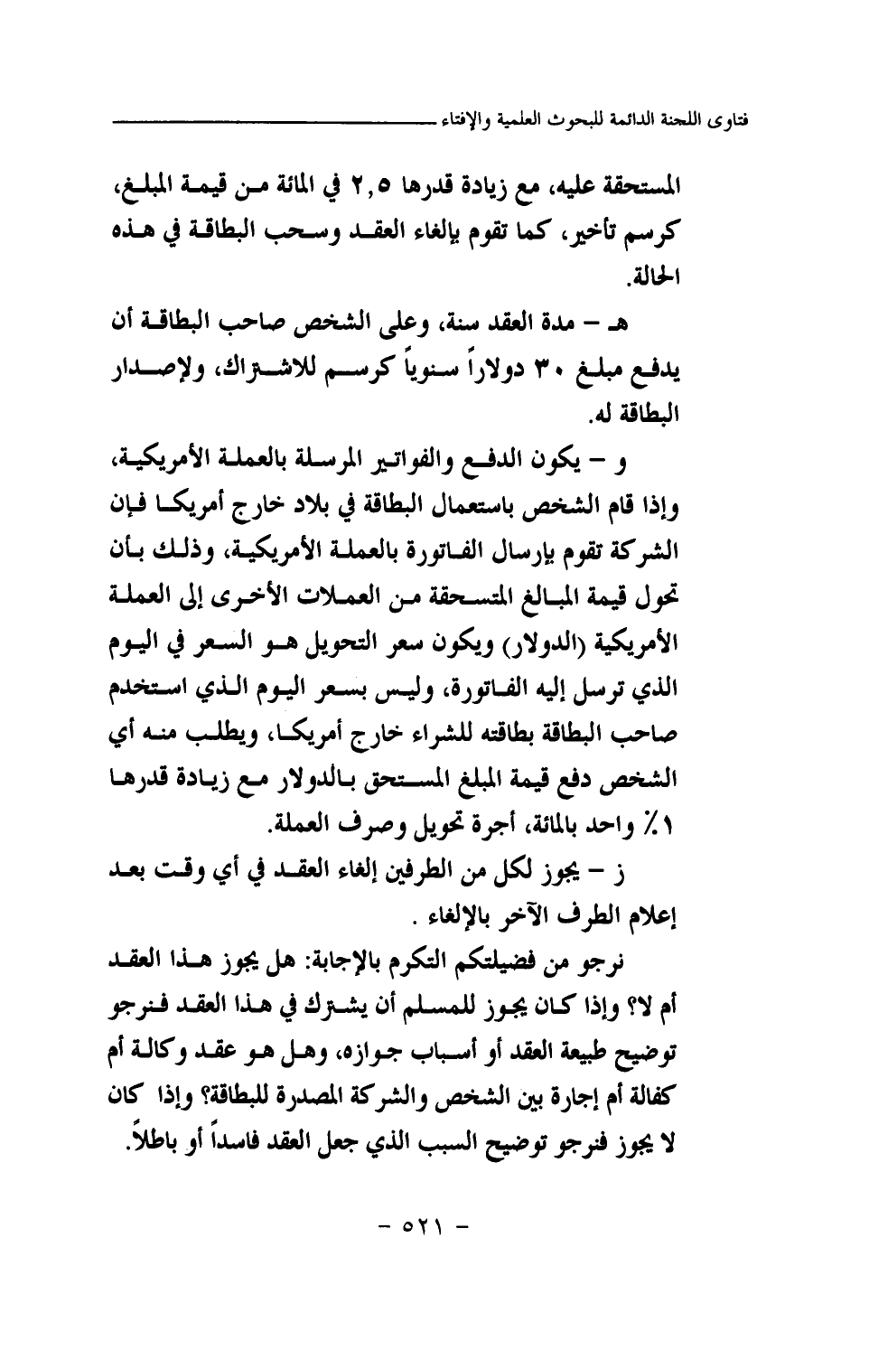 هـ- مدة العقد سنة، وعلى الشخص صاحب البطاقة أن يدفع مبلغ 30 دولارا سنويا كرسم للاشتراك، ولإصدار البطاقة له.