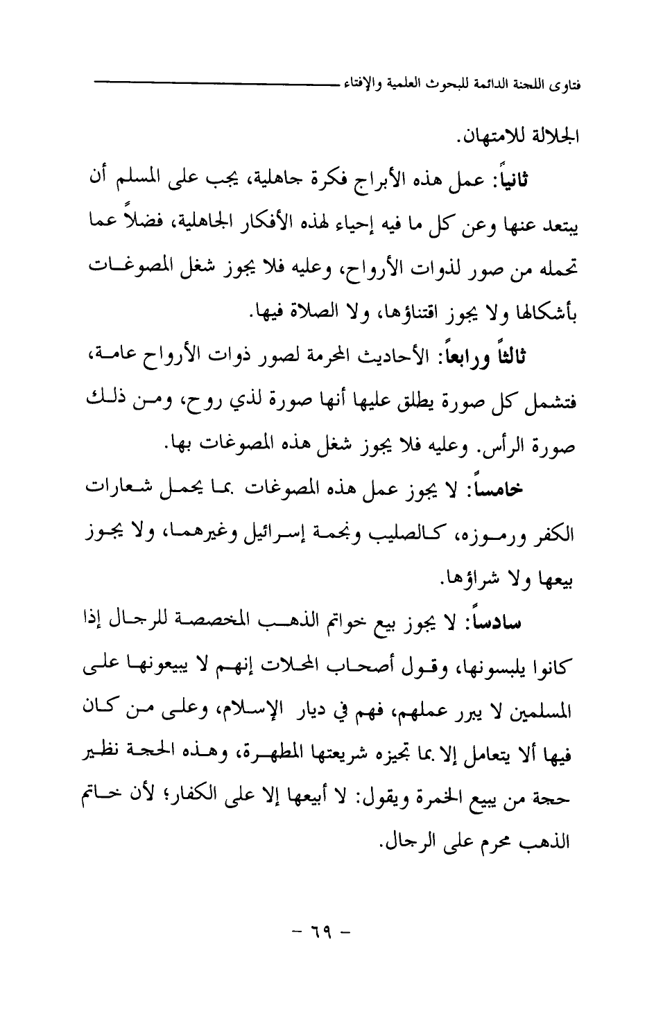 خامسا: لا يجوز عمل هذه المصوغات بما يحمل شعارات الكفر ورموزه، كالصليب ونجمة إسرائيل وغيرهما، ولا يجوز بيعها ولا شراؤها.