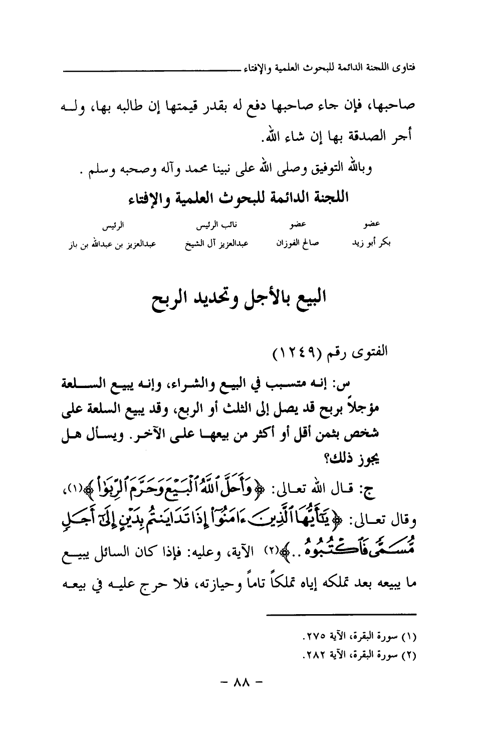 ج: قال الله تعالى: {وَأَحَلَّ اللَّهُ الْبَيْعَ وَحَرَّمَ الرِّبَا} (¬1) وقال تعالى: {يَا أَيُّهَا الَّذِينَ آمَنُوا إِذَا تَدَايَنْتُمْ بِدَيْنٍ إِلَى أَجَلٍ مُسَمًّى فَاكْتُبُوهُ} (¬2) الآية، وعليه: فإذا كان السائل يبيع ما يبيعه بعد تملكه إياه تملكا تاما وحيازته، فلا حرج عليه في بيعه