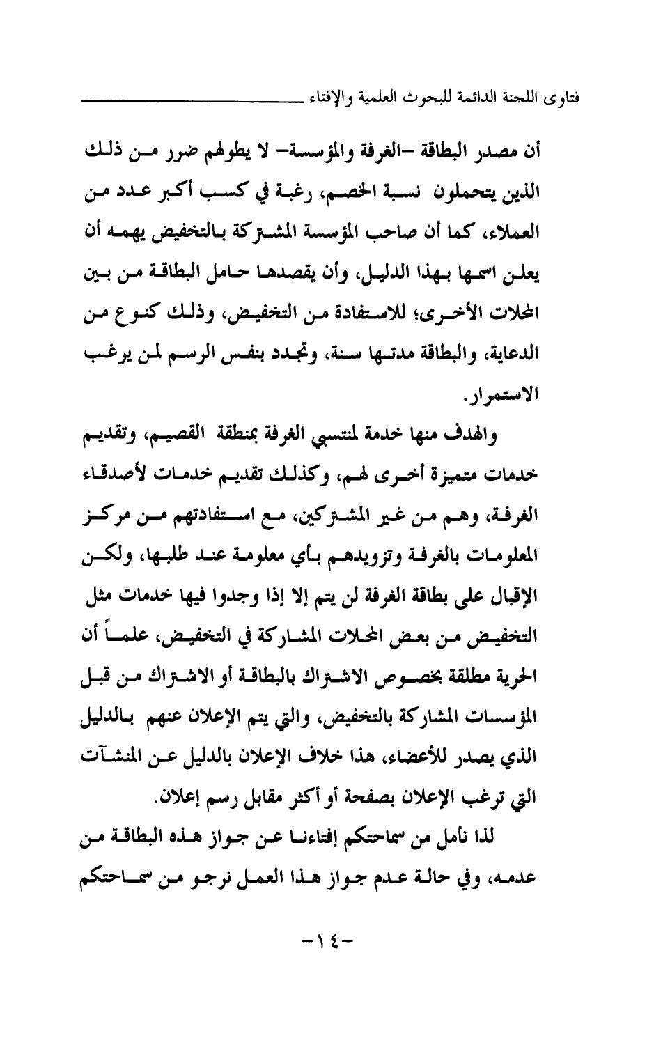 أن مصدر البطاقة -الغرفة والمؤسسة- لا يطولهم ضرر من ذلك الذين يتحملون نسبة الخصم، رغبة في كسب أكبر عدد من العملاء، كما أن صاحب المؤسسة المشتركة بالتخفيض يهمه أن يعلن اسمها بهذا الدليل، وأن يقصدها حامل البطاقة من بين المحلات الأخرى، للاستفادة من التخفيض، وذلك كنوع من الدعاية، والبطاقة مدتها سنة، وتجدد بنفس الرسم لمن يرغب الاستمرار.