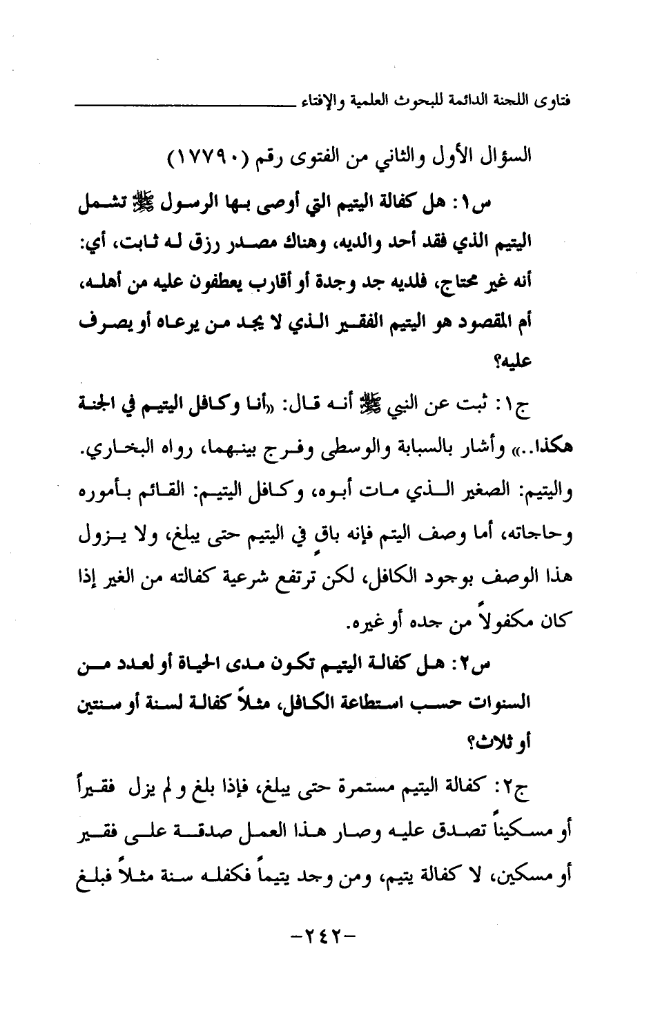 س1: هل كفالة اليتيم التي أوصى بها الرسول -صلى الله عليه وسلم- تشمل اليتيم الذي فقد أحد والديه، وهناك مصدر رزق له ثابت، أي: أنه غير محتاج، فلديه جد وجدة أو أقارب يعطفون عليه من أهله؟ أم المقصود هو اليتيم الفقير الذي لا يجد من يرعاه أو يصرف عليه؟