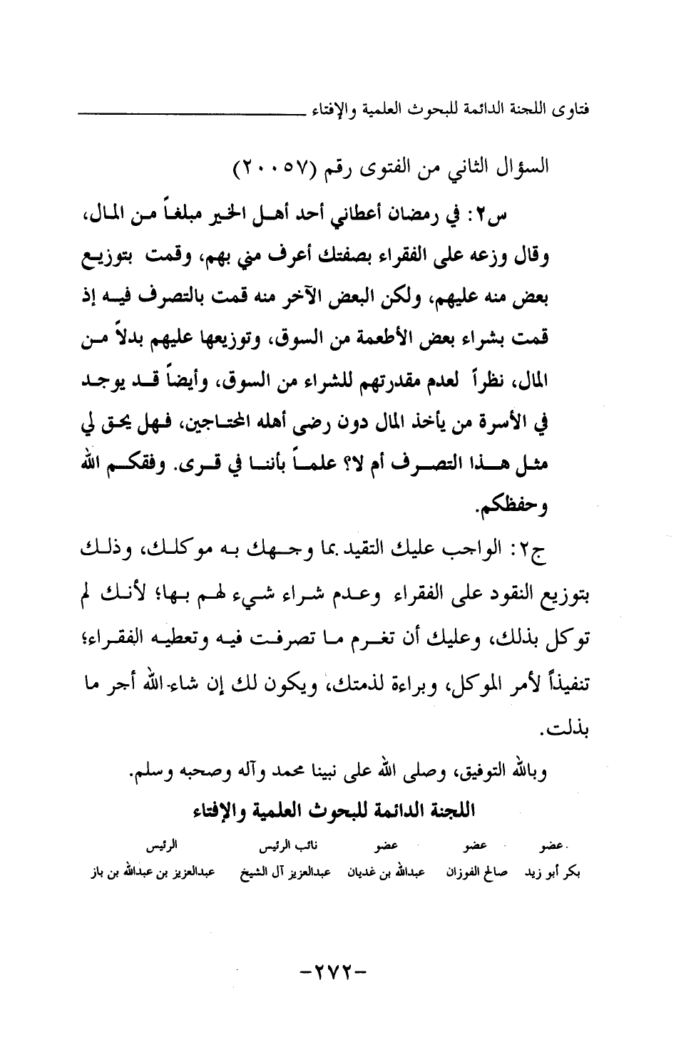ج2: الواجب عليك التقيد مما وجهك به موكلك، وذلك بتوزيع النقود على الفقراء وعدم شراء شيء لهم بها؛ لأنك لم توكل بذلك، وعليك أن تغرم ما تصرفت فيه وتعطيه الفقراء؛ تنفيذا لأمر الموكل وبراءة لذمتك، ويكون لك -إن شاء الله- أجر ما بذلت. وبالله التوفيق، وصلى الله على نبينا محمد وآله وصحبه وسلم.