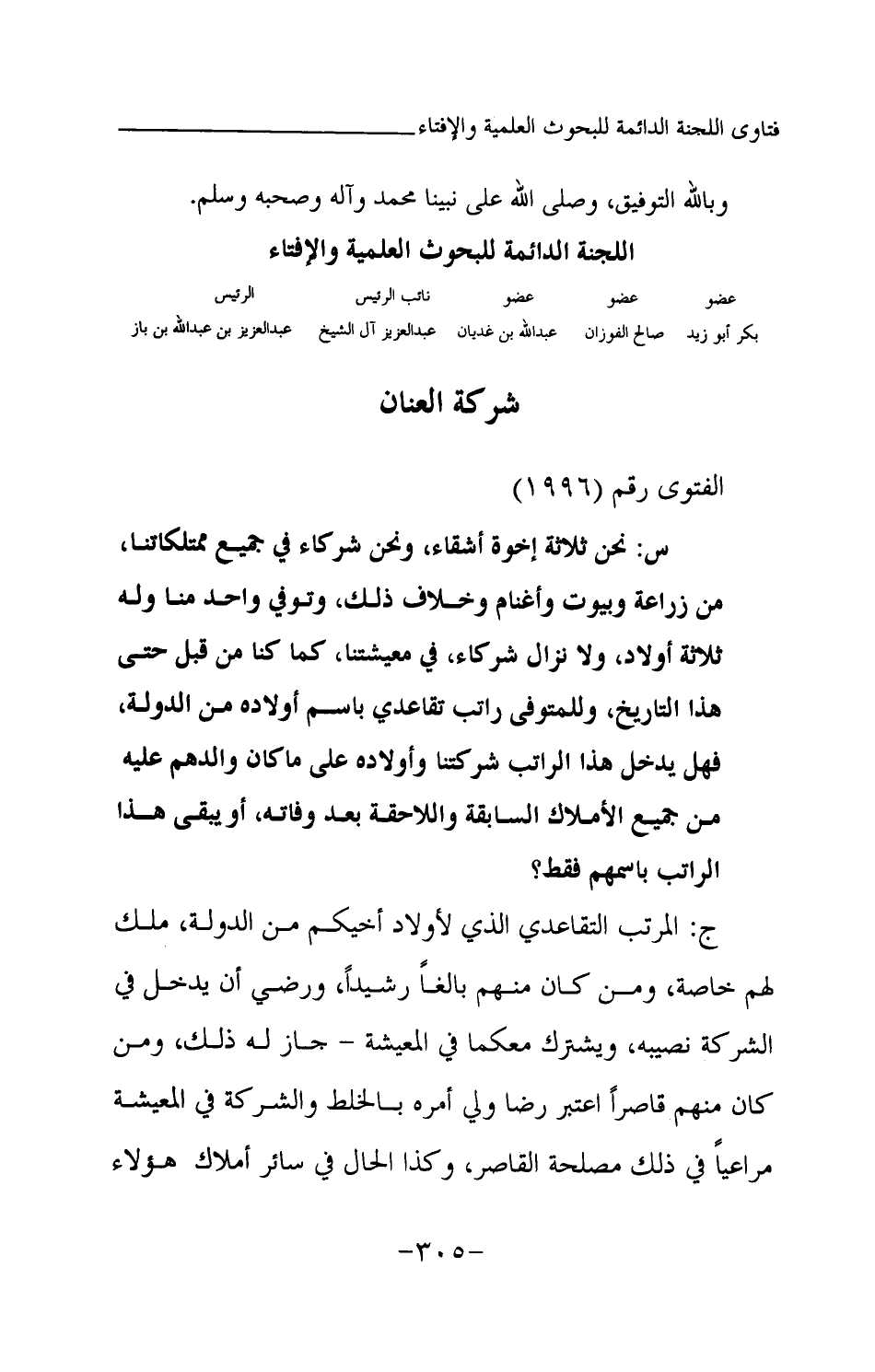س: نحن ثلاثة إخوة أشقاء، ونحن شركاء في جميع ممتلكاتنا، من زراعة وبيوت وأغنام وخلاف ذلك، وتوفي واحد منا وله ثلاثة أولاد، ولا نزال شركاء، في معيشتنا، كما كنا من قبل حتى هذا التاريخ، وللمتوفى راتب تقاعدي باسم أولاده من الدولة، فهل يدخل هذا الراتب شركتنا وأولاده على ما كان والدهم عليه من جميع الأملاك السابقة واللاحقة بعد وفاته، أو يبقى هذا الراتب باسمهم فقط؟