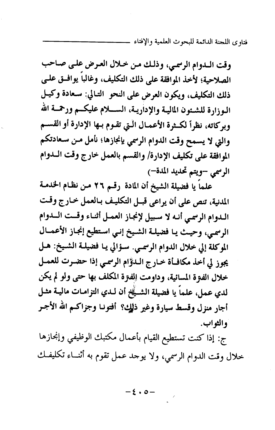 ج: إذا كنت تستطيع القيام بأعمال مكتبك الوظيفي وإنجازها خلال وقت الدوام الرسمي، ولا يوجد عمل تقوم به أثناء تكليفك