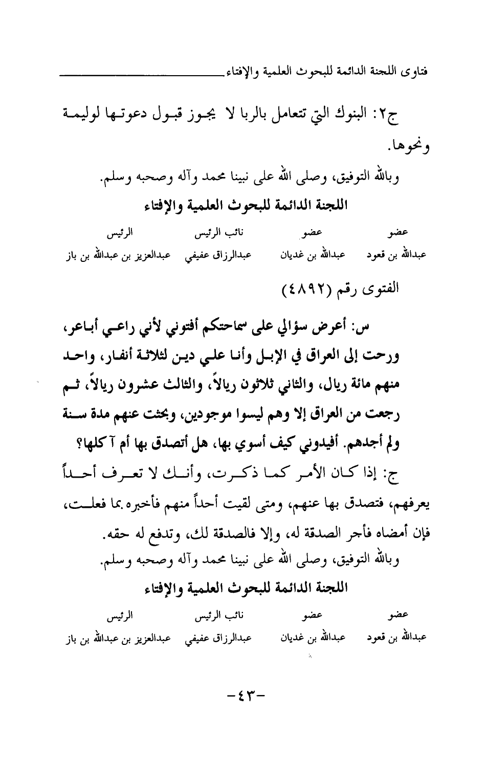 عبد الله بن قعود ... عبد الله بن غديان ... عبد الرزاق عفيفي ... عبد العزيز بن عبد الله بن باز